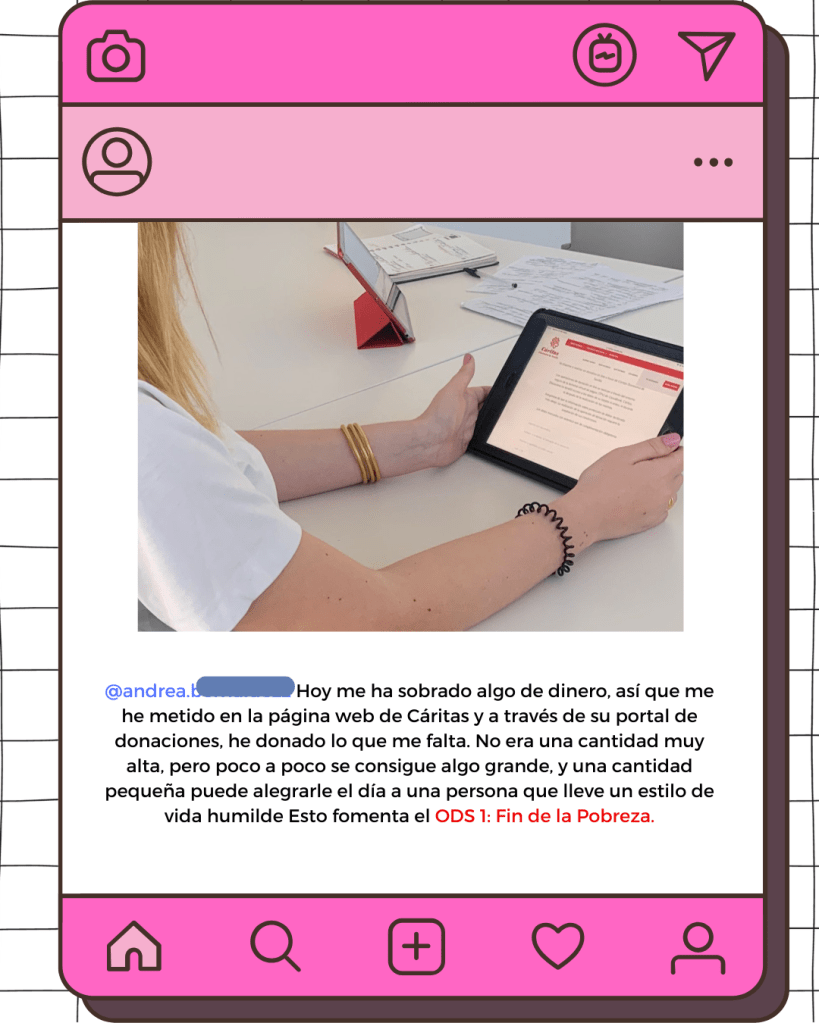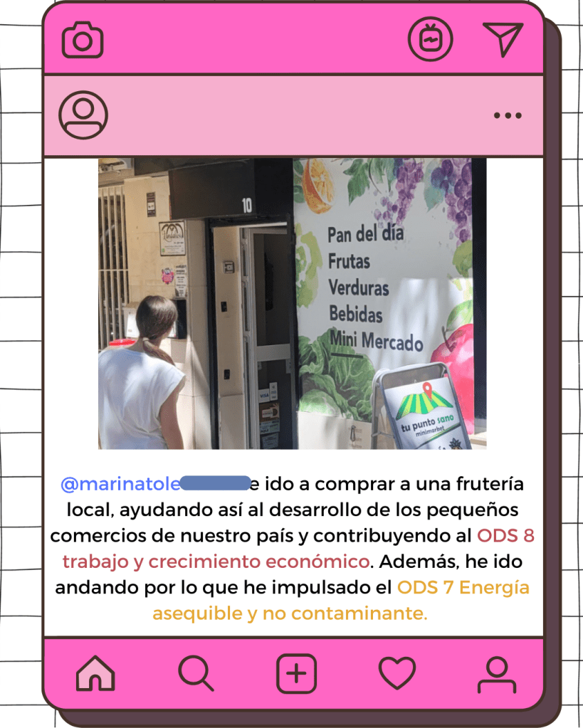 Cada alumno tuvo la oportunidad de elegir uno o varios ODS con los que sintiera afinidad y que pudiera trabajar desde su pequeño campo de acción. A partir de esa elección, realizaron una actividad concreta relacionada con el objetivo seleccionado y compartieron una imagen en InstaODS, buscando así inspirar a sus compañeros y generar una red de motivación y compromiso. No se trata solo de aprender teoría sobre los ODS, sino de vincular el aprendizaje con una acción tangible que beneficie a la comunidad.